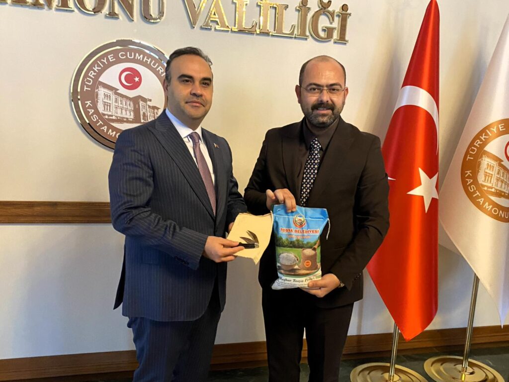 Ayrıca Başkanımız, ilçemizin kültürel değerleri olan Tosya Pirinci, Tosya Kesesi ve Tosya Bıçkısını Sayın Bakanımıza takdim ederek Tosya’nın yöresel zenginliklerini sunmuştur.